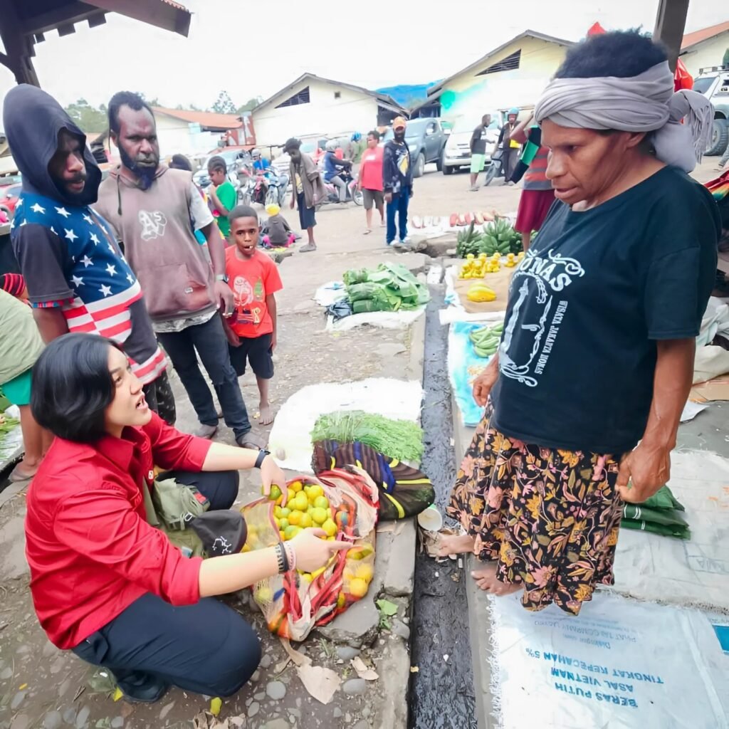 Wamena, 3 Maret 2025 – Dalam upaya mempererat hubungan antara aparat keamanan dan masyarakat, Polwan Ops Damai Cartenz-2025, Ipda Amelia Mega Kartika Kawilarang, S.Psi., berkunjung ke Pasar Jibama, Wamena, Kabupaten Jayawijaya, Papua Pegunungan.