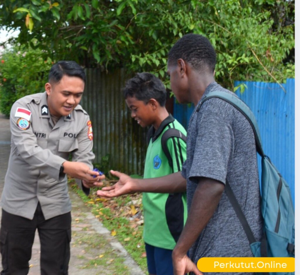 “Kami ingin anak-anak Papua tumbuh dalam lingkungan yang sehat dan aman. Mereka harus semangat belajar, karena merekalah harapan masa depan daerah ini. Pemberian jajanan ini adalah cara kecil kami untuk menyemangati mereka,” ujar Briptu Santriawan saat berdialog dengan para siswa.