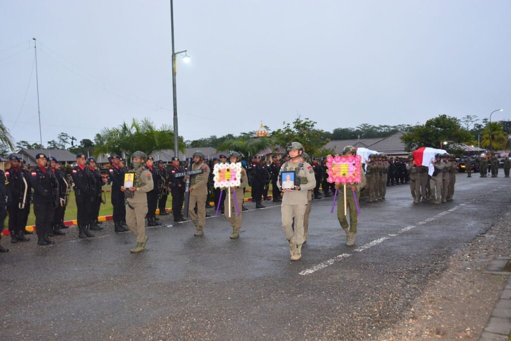 Suasana duka dan suasana penuh penghormatan sangat terasa dari mulai upacara penghormatan di Mako Brimob Batalyon B Mimika hingga di bandara Mozes Kilangin Mimika saat kedua pahlawan Bhayangkara itu diterbangkan menuju kampung halamannya di Serui, Papua.
